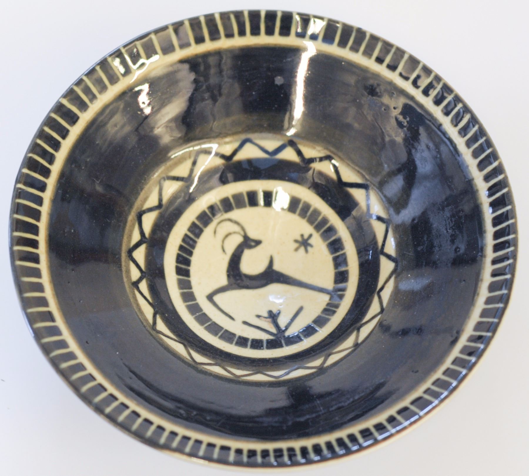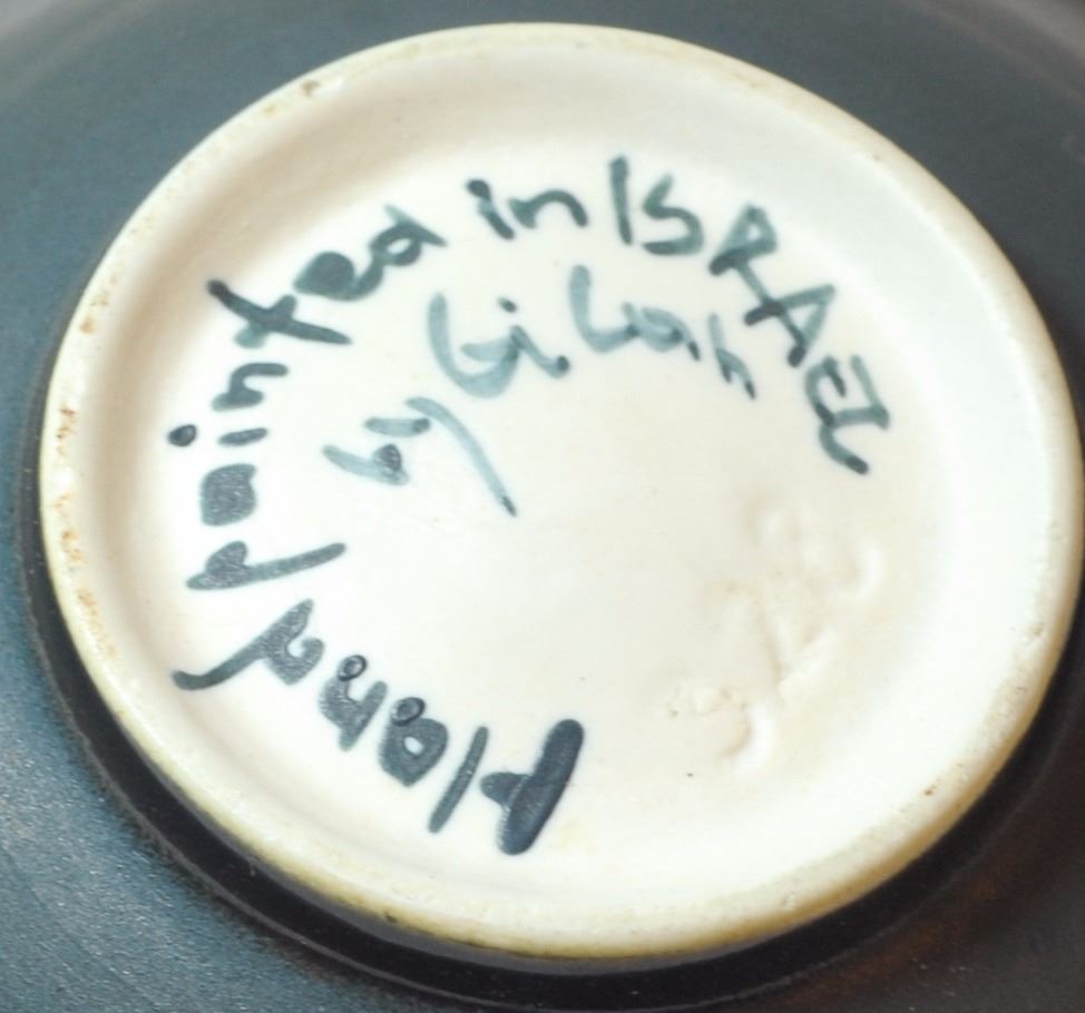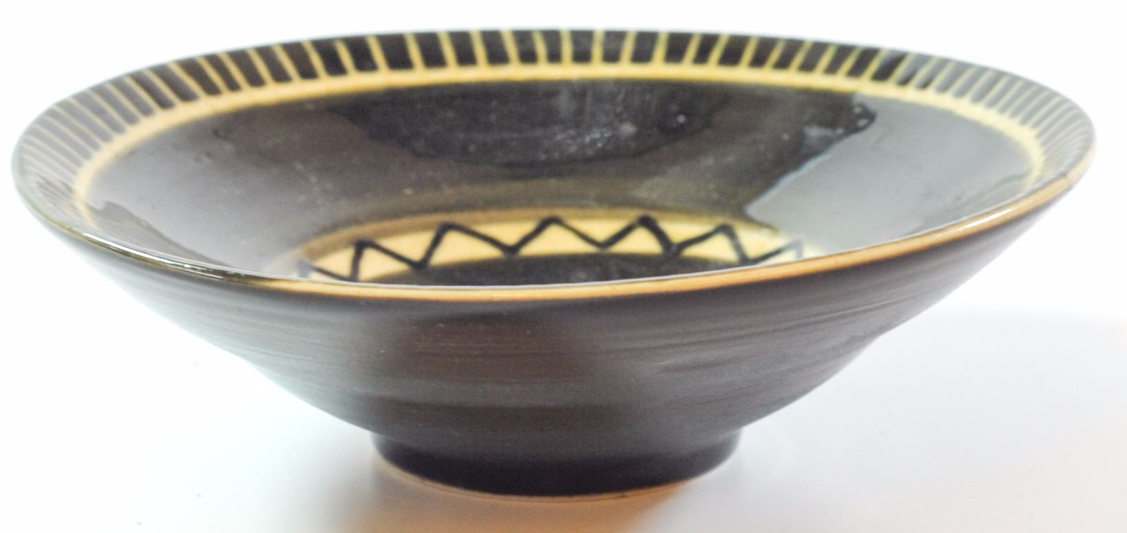 Israeli ceramic bowl by Lapid, deigned by Gilon, Ayala, hand-painted black against a beige background, signed, diameter: 15.5 cm, height: 4.5 cm.