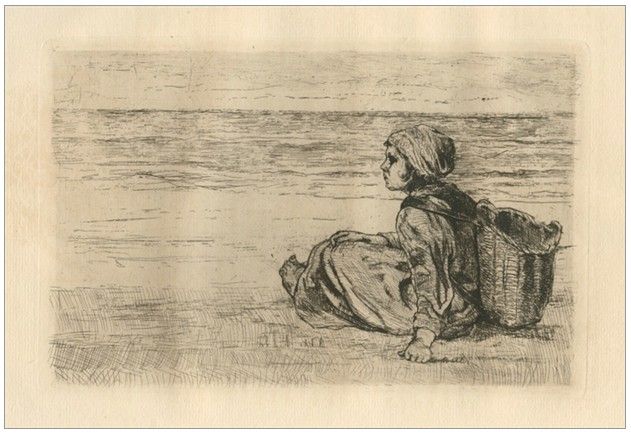 Jozef Israels "A Scheveningue" Original etching - Executed by Jozef Israels in 1879, this is a fine impression on watermarked laid paper, published in Paris by L'Art. Plate size: 5 3/4 x 8 7/8 inches (150 x 225 mm). - Professionally Framed & Matted - Comes With Certificate - -