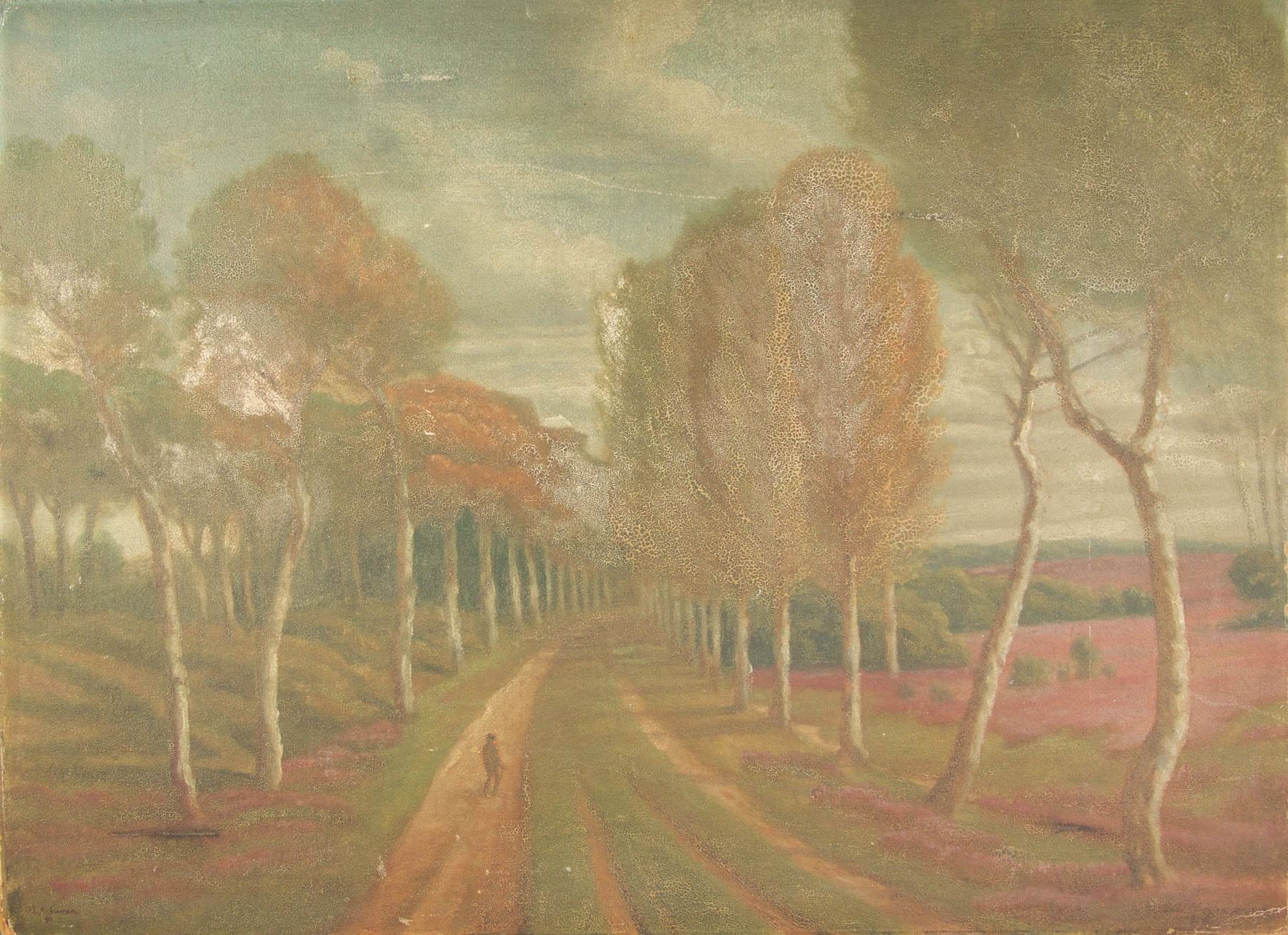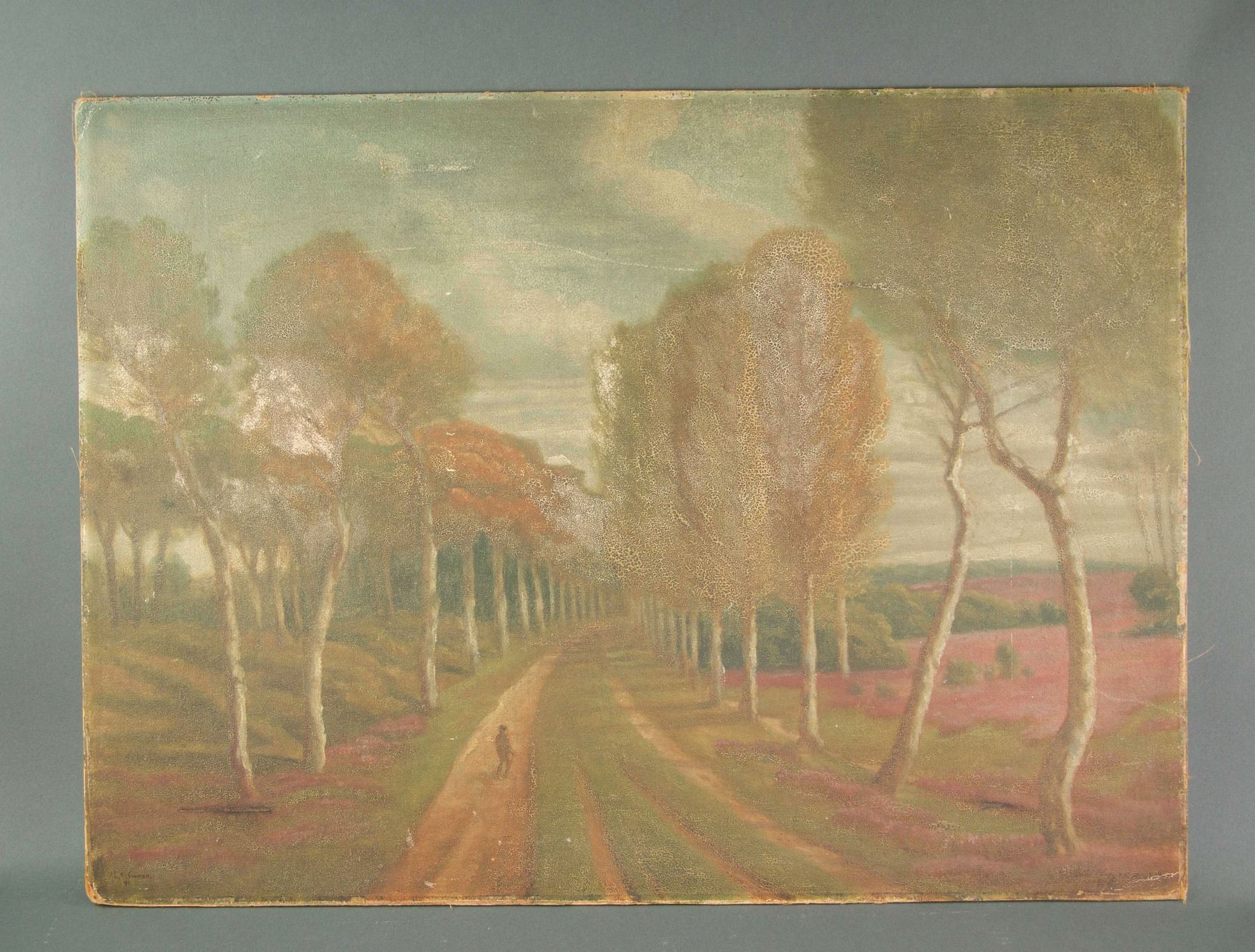 Painting landscape; oil on canvas; glued to board; Signed and Attributed to Issac Ilyich Levitan (1860-1900), Russian artist; dated 1891; 22 inches x 30 inches