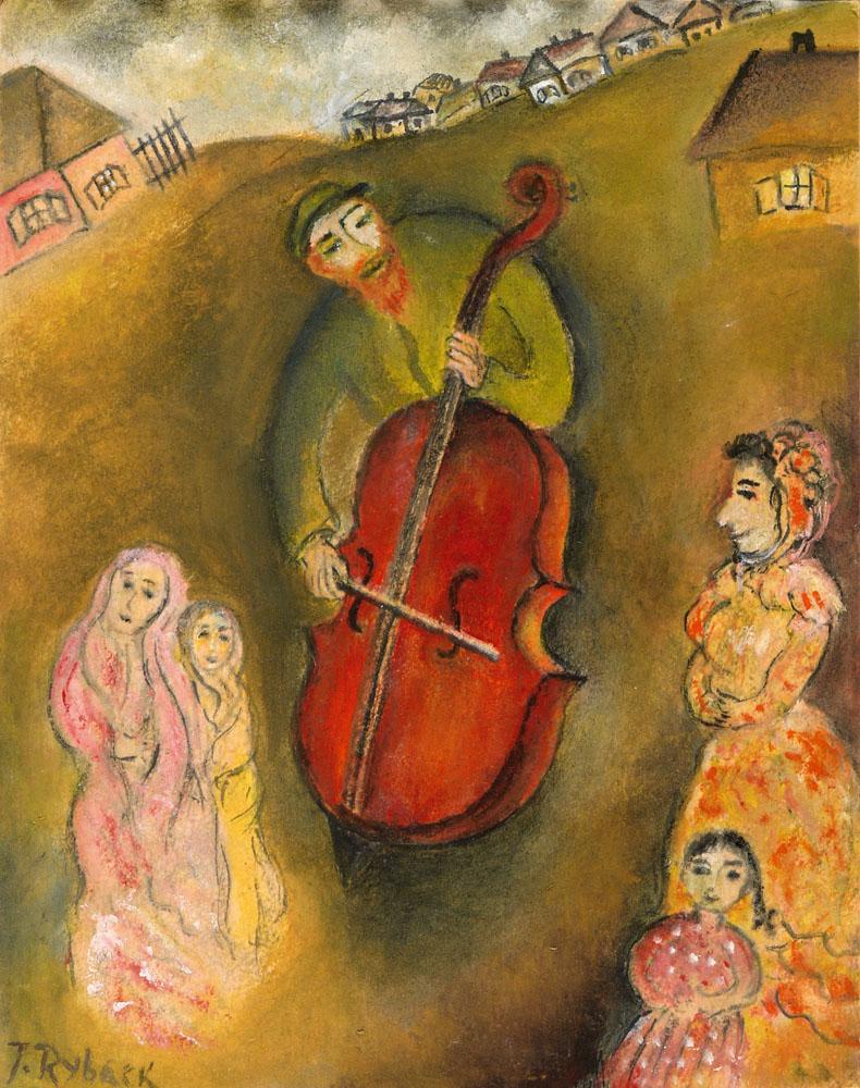 Issachar Ber Ryback, Russian and Ecole de Paris Art, 1897 - 1935, Musician in the Shtetl, Pastel, 26x20cm, Signed., , , The estate of the artist's wife., ,