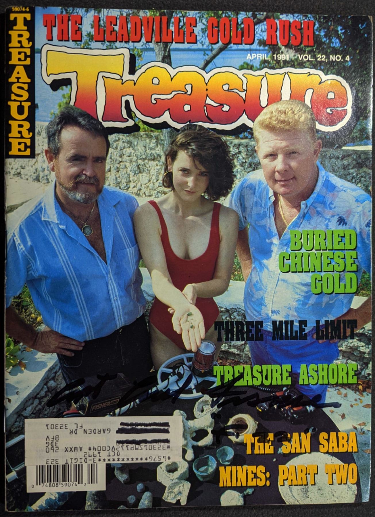 Fismer, Capt. Carl 'Fizz' and Robert Lewis Knecht. ISSUE OF TREASURE SIGNED BY CAPT. CARL 'FIZZ' FISMER. APRIL 1991. Jess Publishing Company, Inc. 4to. Twentynine Palms. original pictorial paper wraps. illustrated. Fine. April, 1991, Volume 22 No. 4. Includes the article, 'Three Mile Limit' by Capt. Carl 'Fizz' Fismer and Robert Lewis Knecht. pp 26-28, 30. signed on the cover by Capt. Carl 'Fizz' Fismer. Lot weight: 0 lbs 5oz. Subject(s): Sunken Treasure.