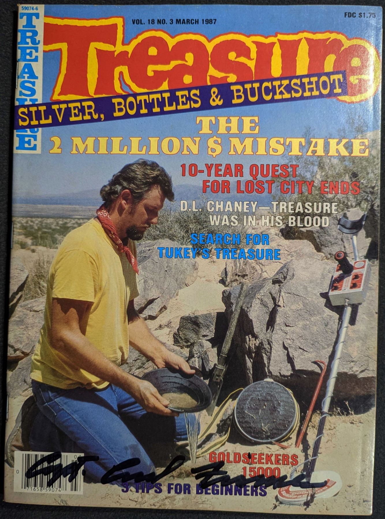 Fismer, Capt. Carl 'Fizz'. ISSUE OF TREASURE SIGNED BY CAPT. CARL 'FIZZ' FISMER. MARCH 1987. Jess Publishing Company, Inc. 4to. Twentynine Palms. original pictorial paper wraps. illustrated. Fine. March, 1987, Volume 18 No. 3. Includes the article, '$250,000 - Not Bad for a Day's Work!' by Capt. Carl 'Fizz' Fismer. pp 70-71, 74; and 'Who Really Owns the DeBraak?' by Hal Douglas. pp 44-45, 69. signed on the cover by Capt. Carl 'Fizz' Fismer. Lot weight: 0 lbs 4oz. Subject(s): Sunken Treasure.