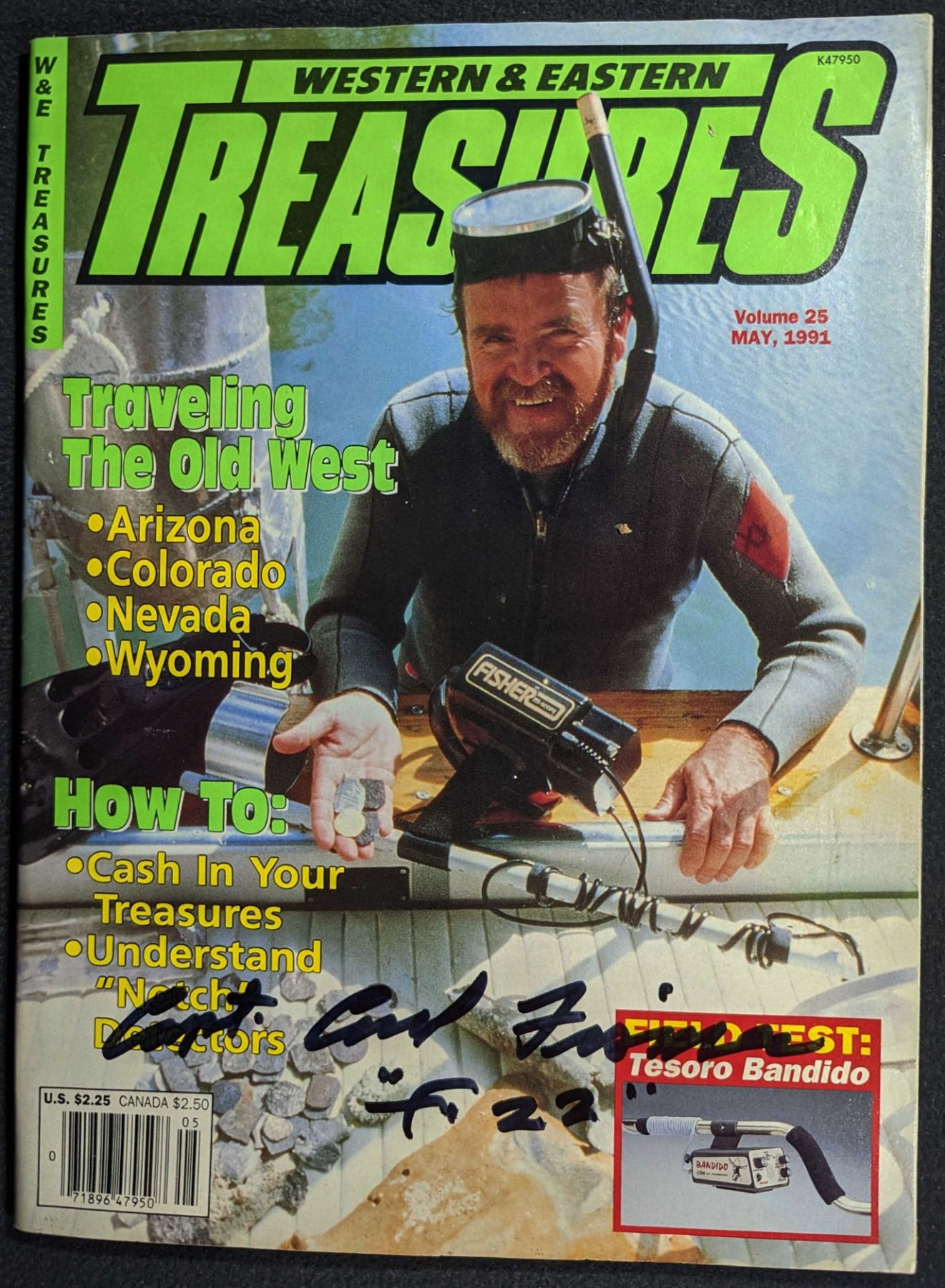 Western & Eastern Treasures, Arcata. ISSUE OF WESTERN & EASTERN TREASURES SIGNED BY CAPT. CARL 'FIZZ' FISMER. MAY 1991. Knecht, Robert Lewis. 1991. 4to. 76, (2) pages. Original pictorial paper wraps. May, 1991, Volume 25 No. 5. Signed on the cover by Capt. Carl 'Fizz' Fismer. Illustrated. Fine. Includes the article, 'The Treasure Experience' by Robert Lewis Knecht. pp 42-43. Lot weight: 0 lbs 5oz. Subject(s): Sunken Treasure.