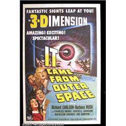 It Came From Outer Space (Universal, 1953). One Sheet (27"X41") This 3-D film was the trendsetter for so many of the classic sc-fi thrillers of the fifties. It was directed by Jack Arnold, who later went on to direct many of the genre's greatest films. The artwork for this classic science fiction poster was done by Joseph Smith. Very Fine on Paper,Left Border Trimmed 3/4". Important notice: We expect to be auctioning lots at the rate of 200-250 per hour. Sometimes eBay Premier live bid software cannot keep up with that pace, so we strongly recommend that you place a realistic proxy bid now as insurance to avoid disappointment. Also please note that all Heritage/CAA lots purchased through eBay Premier carry a 20% Buyer's Premium.