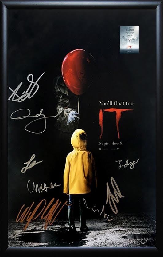 "It" autographed movie poster by Bill Skarsgard, Jaden Lieberher, Jeremy Ray Taylor, Sophia Lillis, Finn Wolfhard, and Chosen Jacobs. This item comes with a Certificate of Authenticity from a third party authenticator. This Certification of Authenticity does not imply that the item will be certified by any other rival authentication companies. The accompanied certification is the only certification the auction company can confirm. These items are being sold as collectable pieces and there is no guarantee that this item can be resold on any online marketplace. Each of these companies has their own policies and politics.
