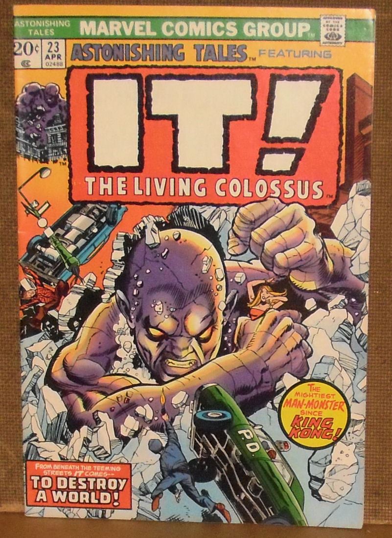 Worth more than 35$: "It! The Living Colossus" an very old 20 cents Marvel Comics volume 1, #23, 1974 great adventurous collectible comic book, with 'Conquerors Three!', and 'Fin Fang Foom!' stories, wonderful ones, as is in near mint or mint (looks like mint as it seems pages are NOT read yet); add to your collection now or start one.