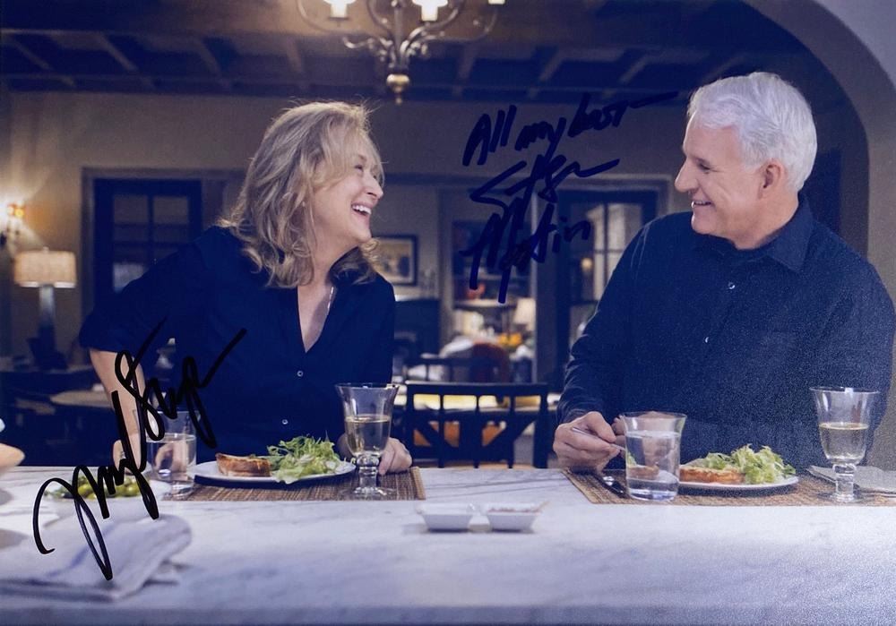 It's Complicated facsimile signed movie photo autographed by Meryl Streep and Steve Martin. 8x10 inches. This item is a reprint of an original autograph