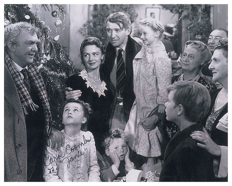 Two signed 10 x 8 satin-finish photos from the film: one of George Bailey and Zuzu, signed in black felt tip, “Karolyn Grimes ‘ZuZu”; and one from the conclusion of the film, signed in black felt tip, “Carol Coombs ‘Janie.’” In fine condition.