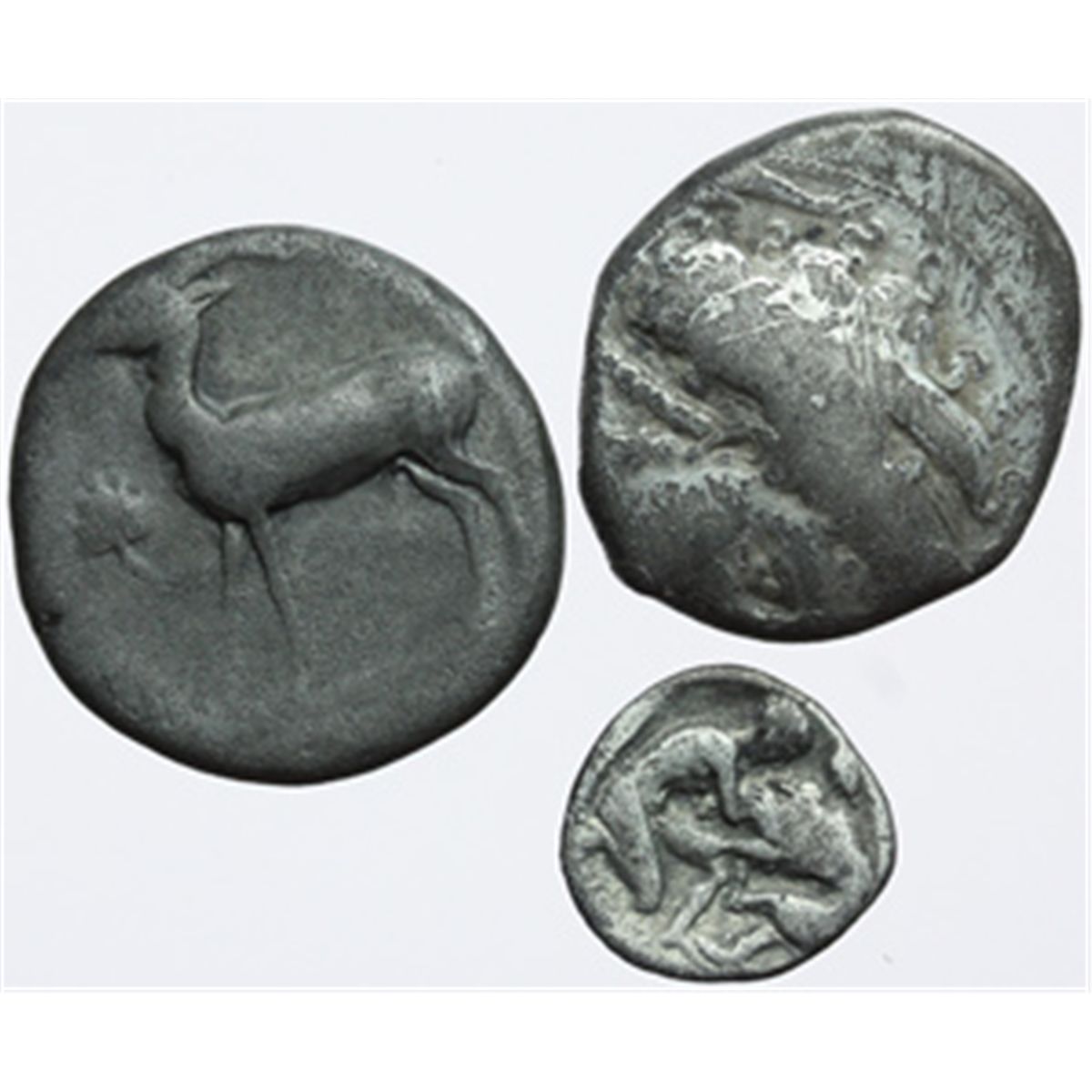 Lotti classici. Italia Greca. Italia greca. Lotto di 3 nominali d'argento da classificare. AG. Due didracme e un diobolo. qBB:BB.