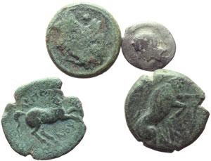 Lotti classici. Italia greca. Lotto di 4 nominali (3 di bronzo e uno d'argento) da classificare. AG/AE. qBB:BB.