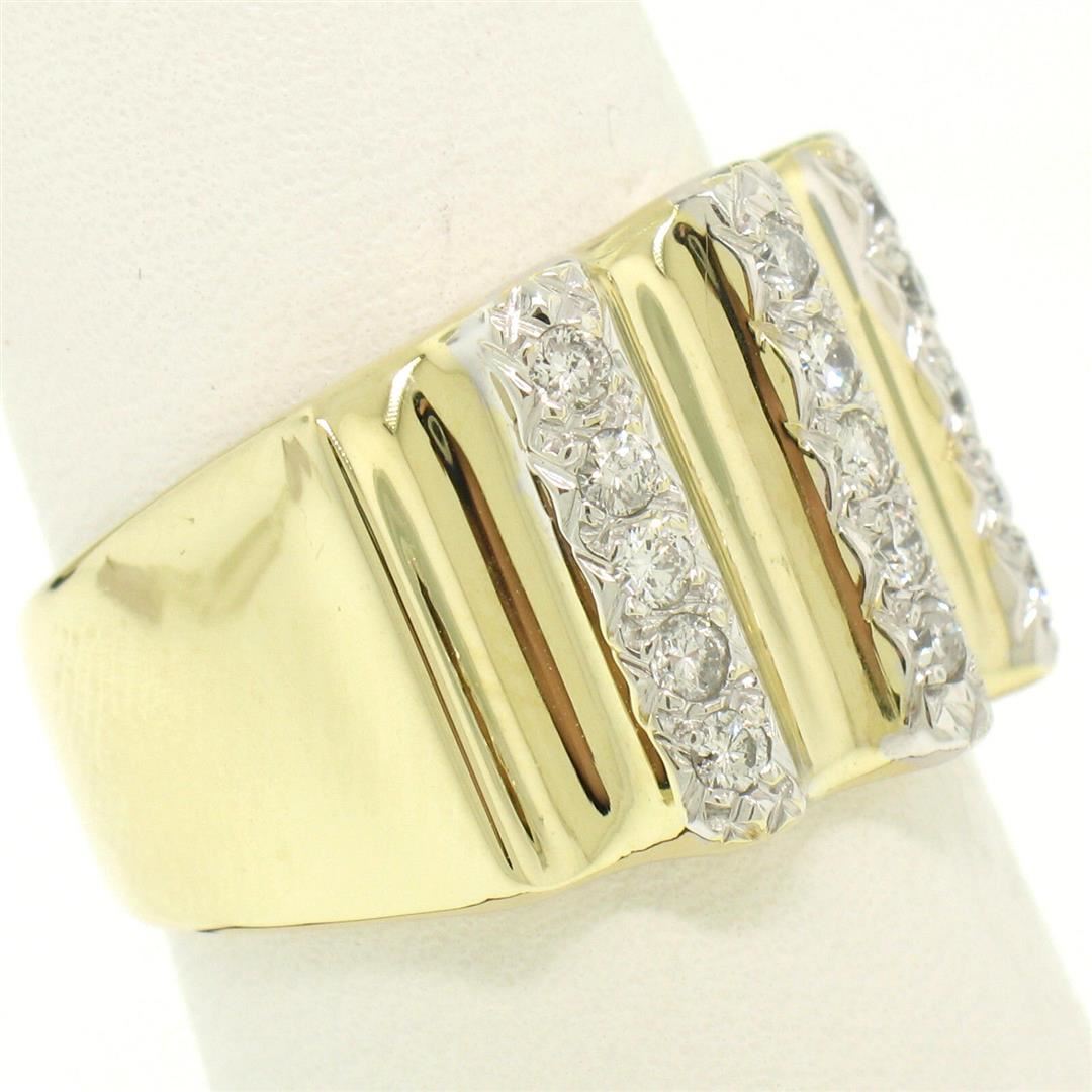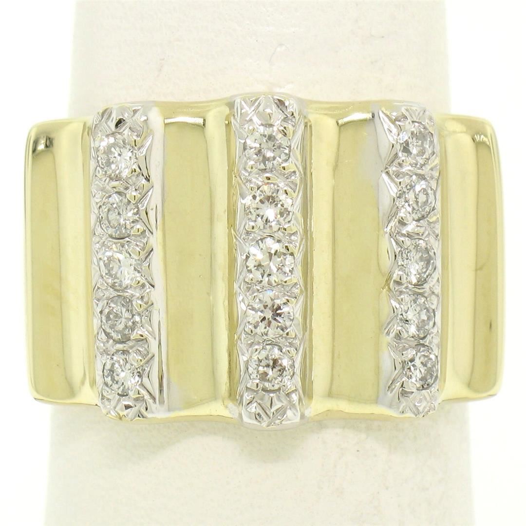 Italian 14K Solid Yellow Gold.35 ctw G VS Diamond Vertical Grooved Wide Band Rin