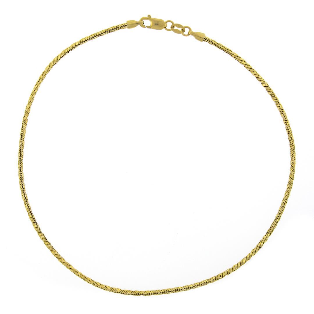 A solid 14k yellow gold italian link bracelet anklet. It weighs a total of 4.0 grams, measures 1.6mm wide, and measures 10 inches in length.