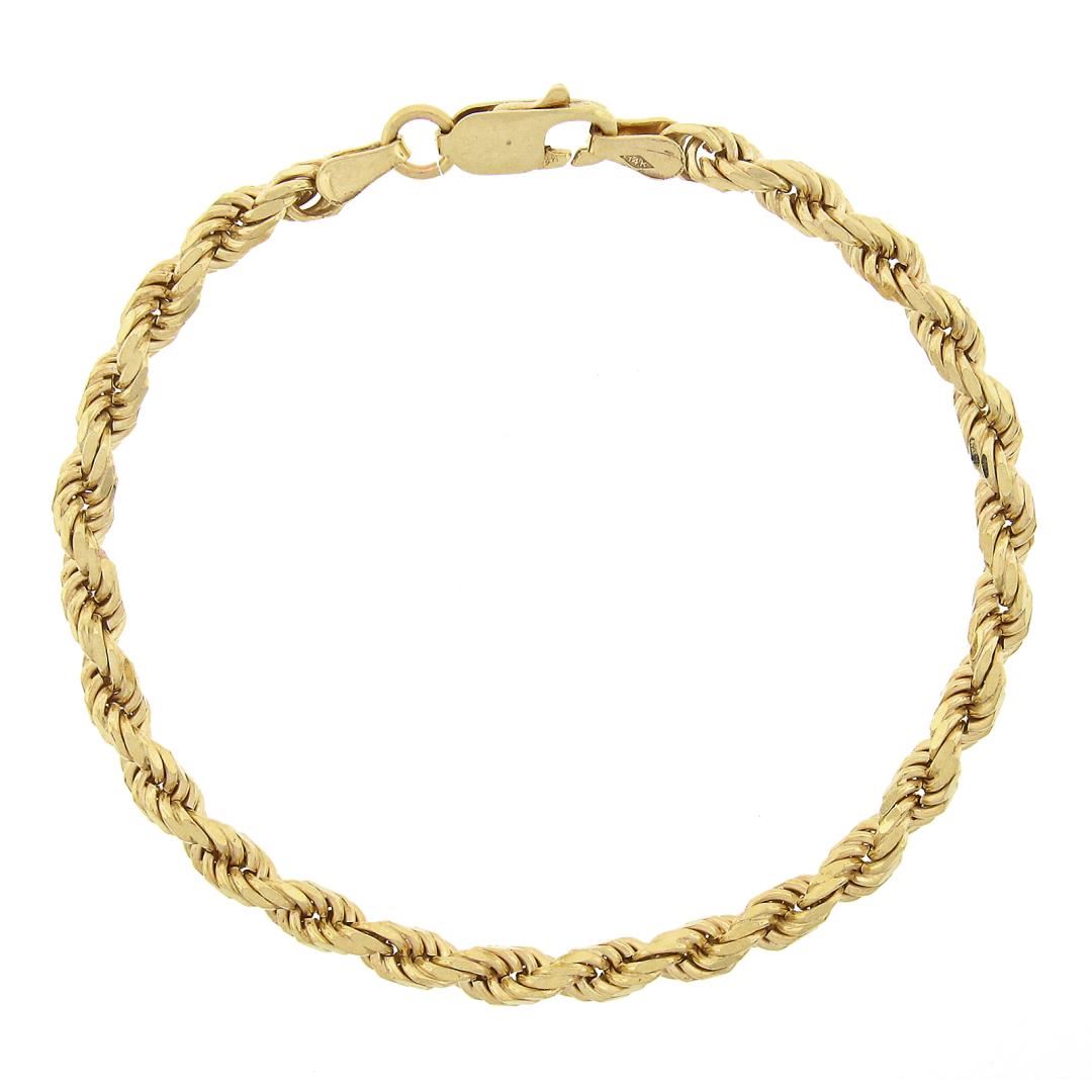 A solid 14k yellow gold italian rope link bracelet. It weighs a total of 11.09 grams, measures 3.9mm wide, and measures 6.5 inches in length.