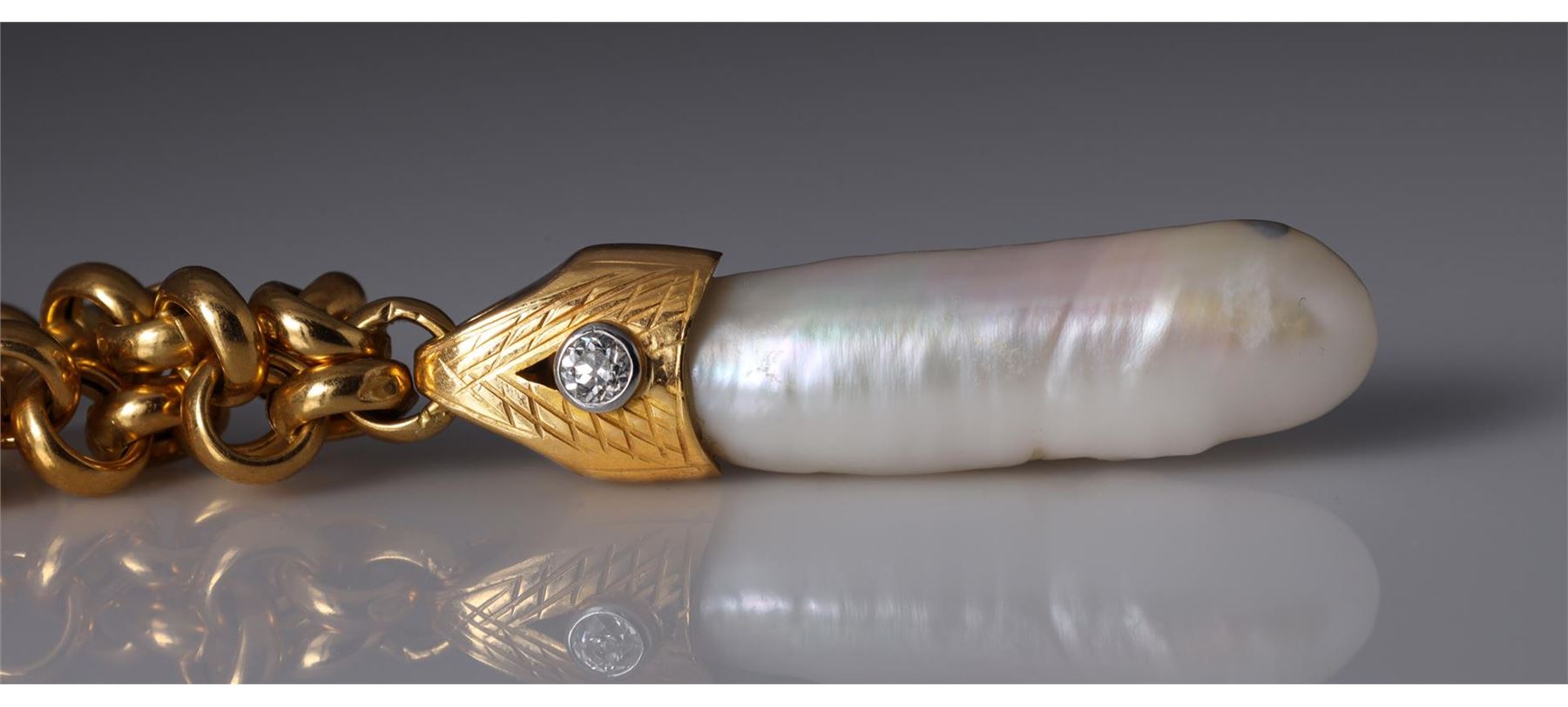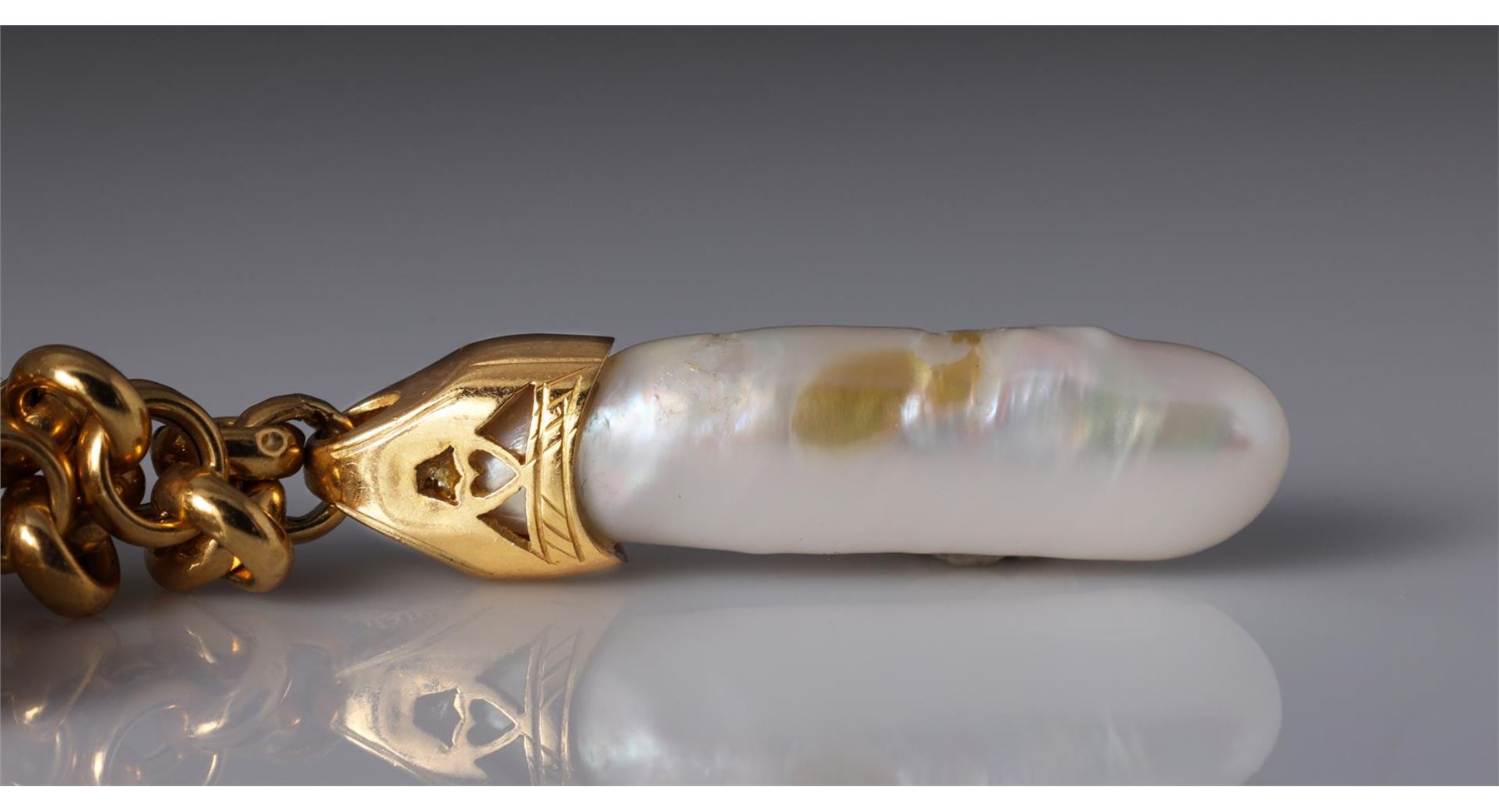 Italian 18K Gold Pearl & Diamond Designer Necklace Total weight of necklace is 46.5 gm. Estimated retail value $7,680.