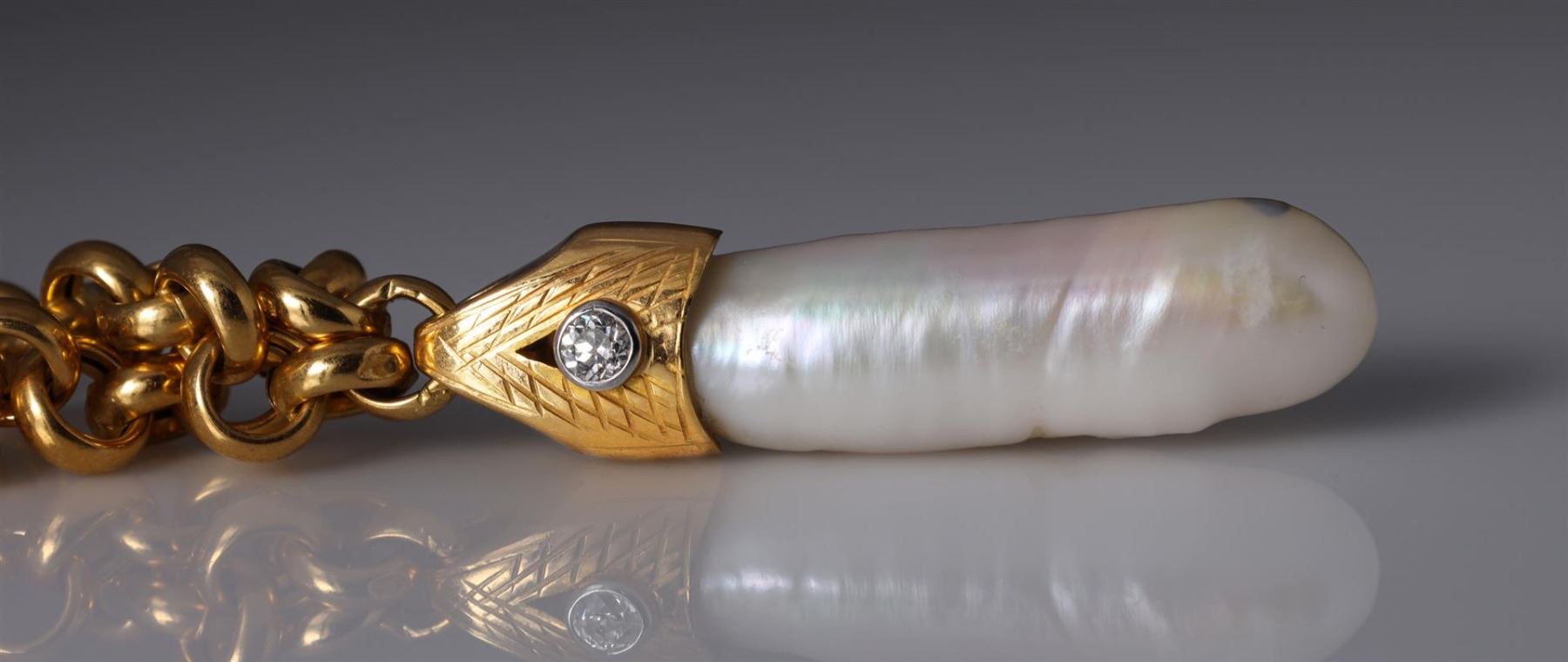 Italian 18K Gold Pearl & Diamond Designer Necklace Total weight of necklace is 46.5 gm. Estimated retail value $7,680.