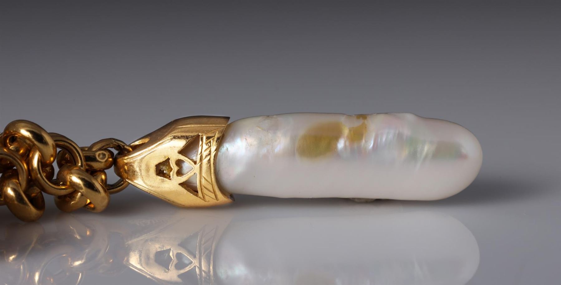 Italian 18K Gold Pearl & Diamond Designer Necklace Total weight of necklace is 46.5 gm. Estimated retail value $7,680.