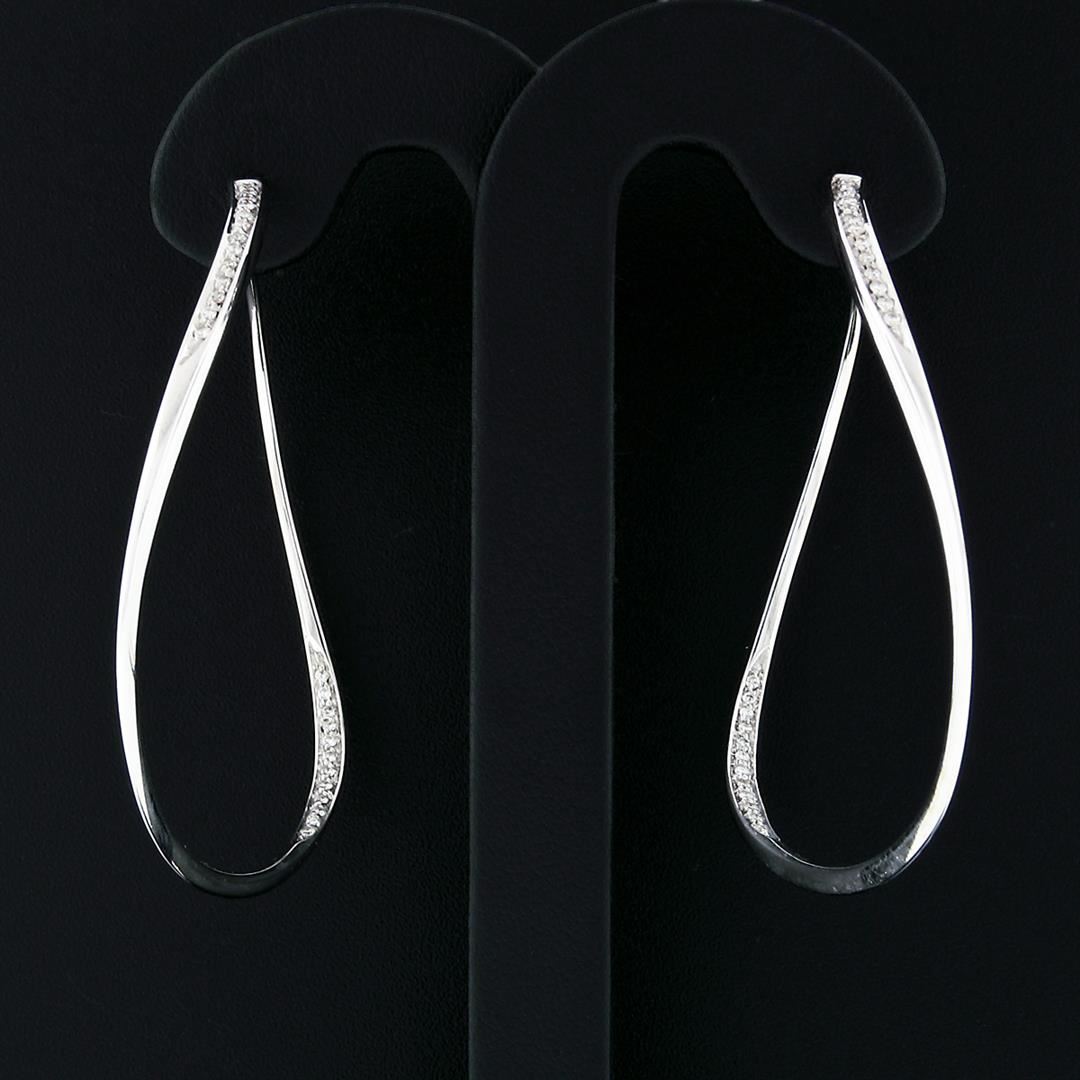 A pair of solid 18k white gold wavy earrings, with 50 round brilliant cut natural diamonds (F/G - VS1/VS2; 0.25ctw). The earrings measure approximately 50.5x2.9mm and weigh a total of 11.90 grams.