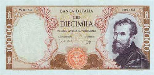 Cartamoneta - Repubblica Italiana - Biglietto di Banca da 10.000 Lire "Michelangelo" - D.M. 3.7.1962 - Zecca: - Diritto: - Rovescio: - Serie sostitutiva W0064 - Qualche leggera grinza e una piccola macchia in alto