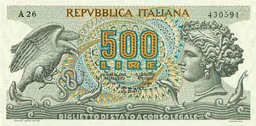 Cartamoneta - Repubblica Italiana - Biglietto di Stato da 500 Lire "Aretusa" - D.M. 23.4.1975 - Lievissime tracce di circolazione