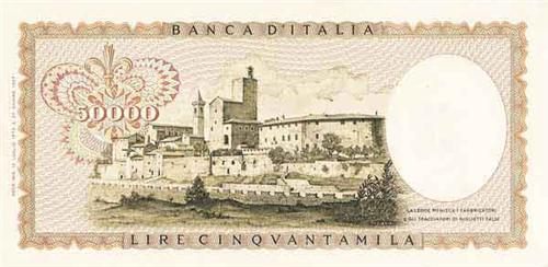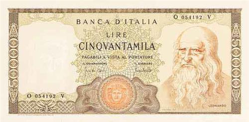 Cartamoneta - Repubblica Italiana - Biglietto di Banca da 50.000 Lire "Leonardo" - D.M. 19.7.1970 - Zecca: - Diritto: - Rovescio: - Estratto all'epoca da una mazzetta della Banca d'Italia