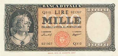 Italian Bankonotes - 1000 L. 15/9/1959 - - Biglietto di Banca da 1000 Lire "Italia ornata di perle" - D.M. 25.8 e 15.9.1959 Zecca: - Diritto: - Rovescio: - Qualche lieve traccia di piegatura - Di buona qualità
