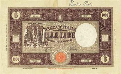 Italian Bankonotes - 1000 L. 7/10/1944 - - Biglietto di Banca da 1000 Lire "Grande M-BI" - D.M. 7.10.1944 Zecca: - Diritto: - Rovescio: - Scritta al fronte e pieghe centrali - Da esaminare
