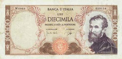 Italian Bankonotes - 10000 L 3/7/1962 - - Biglietto di Banca da 10.000 Lire "Michelangelo" - D.M. 3.7.1962 Zecca: - Diritto: - Rovescio: - Serie sostitutiva W0069 - Varie tracce di circolazione - Da esaminare