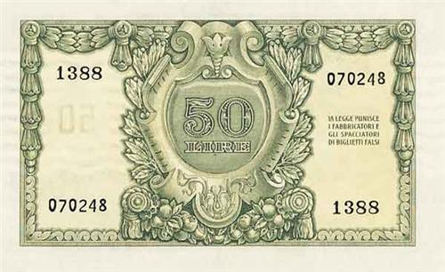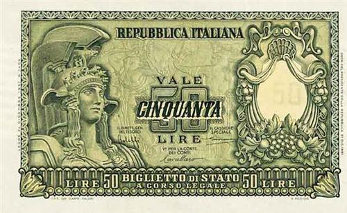 Italian Bankonotes - 50 L. - - Biglietto di Stato da 50 Lire "Italia Elmata" Zecca: - Diritto: - Rovescio: - Qualità ottima