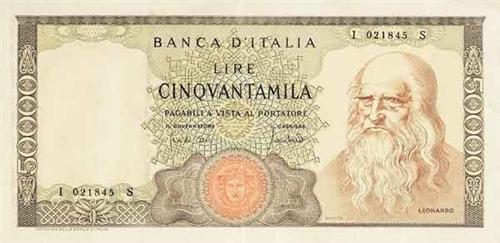 Italian Bankonotes - 50000 L 19/7/1970 - - Biglietto di Banca da 50.000 Lire "Leonardo" - D.M. 19.7.1970 Zecca: - Diritto: - Rovescio: - Piega verticale restaurato - Da esaminare