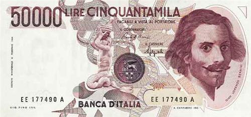 Italian Bankonotes - 50000 L. 1992 - - Biglietto di Banca da 50.000 Lire "Bernini" I tipo - D.M. 6.3.1992 Zecca: - Diritto: - Rovescio: - Piccola piega nell'angolo basso a sinistra - Da esaminare