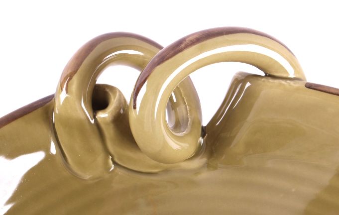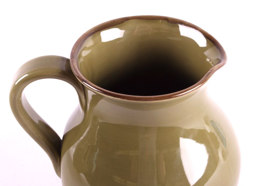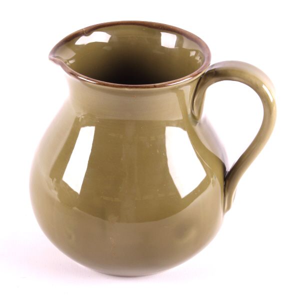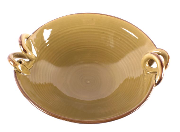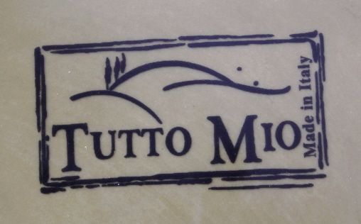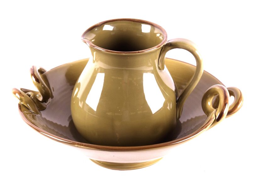 This is an Italian basin and water pitcher. Both pieces are marked "Tutto Mio Made in Italy". The basin has uniquely crafted handles. The basin and pitcher are both hand painted. They are in excellent condition. The basin measures 14" in diameter and is 5.25" tall. The pitcher is 7" in diameter and is 8" tall.
