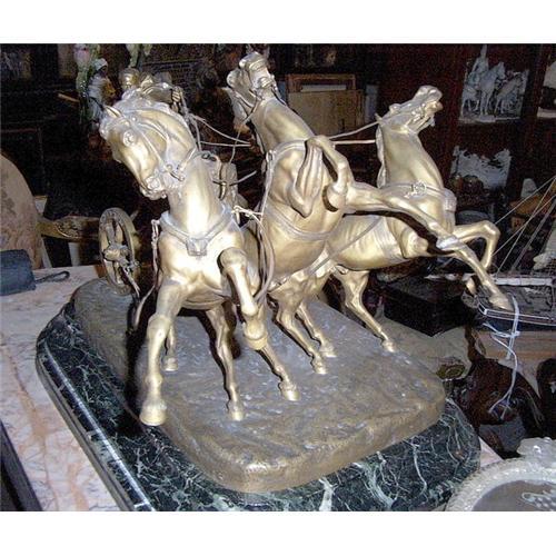 Amazing piece full of movement, horses are alive, Julius Cesar is driving, very good size, w=24 inches h=16 d=16, highest quality bronze, with original marble stand, signed Vanetti