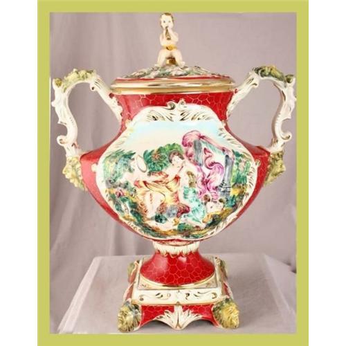 </STRONG>Title: 1950 Italian Large Capo Di Monte Vase Gods Goddesses Mythology Hand-Painted</STRONG><P>Item #: 7-317-0</P><P>Comment: Vibrant colors, large size and interesting decoration make this a spectacular piece!</P><P>Condition: In overall great condition! Has one tiny chip on one handle, but otherwise in mint condition!</P><P>Dimensions (in.): 20H 14.5W 8D </P><P>Age (ca.): 1950</P><P>Origin: Italy</P><P>Size: Large</P><P>Style: Capo Di Monte</P><P>Material: Ceramic</P><P>Object: Vase</P><P>Subject: Gods Goddesses Mythology</P><P>Additional Detail 1: Hand-Painted</P><P>Piece Type: Ceramics & Porcelain</P><P>Special Message: Because EuroLuxAntiques maintains its own website and lists on other online sites, while also operating a physical store location in Newberry, South Carolina, we reserve the right to end any listing early if no bids have been placed. However, once a bid has been placed, we give our online auction buyers priority and allow the listing to end as scheduled. Because of this, we encourage all of our buyers to place bids early so that your treasured find doesn't sell elsewhere to someone else. Happy bidding and thanks! Aimee & Greg Talbot at EuroLuxAntiques</P> #NTR# Italian ...