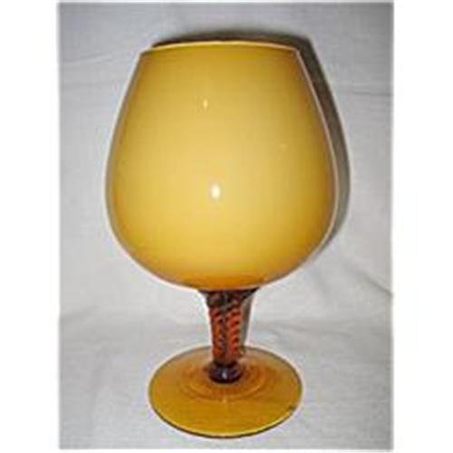 This lovely cased glass compote circa 1970's, with an amber exterior and a white interior is marked: Made in Italy on a sticker on the bottom. The colors are breathtaking when hit with natural light the way the yellow amber drifts to the amber stem and base. In very good + condition it measures 11 3/4 tall has a 3 7/8 inch rim with a 4 3/4 inch base. A wonderful addition to any Italian Glass Collection. <BR>SH & Ins. will be quoted after orders placed. If you have questions please contact me and thank you for looking.