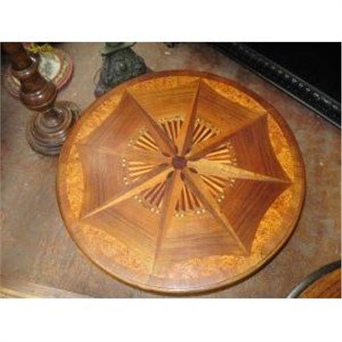 Inlaid with exotic and precious woods coffee table on carved turtles and cabriolet legs, ca 1905