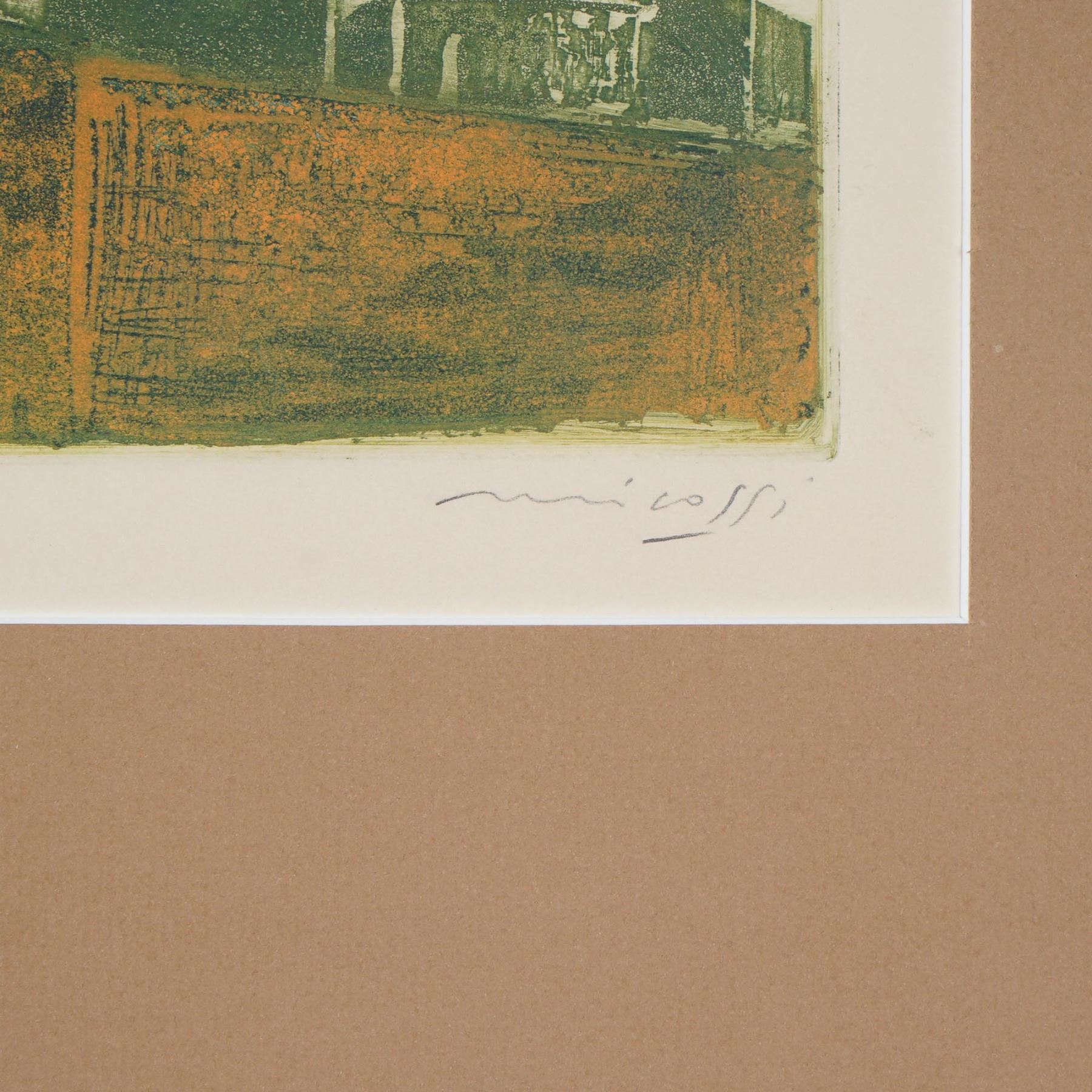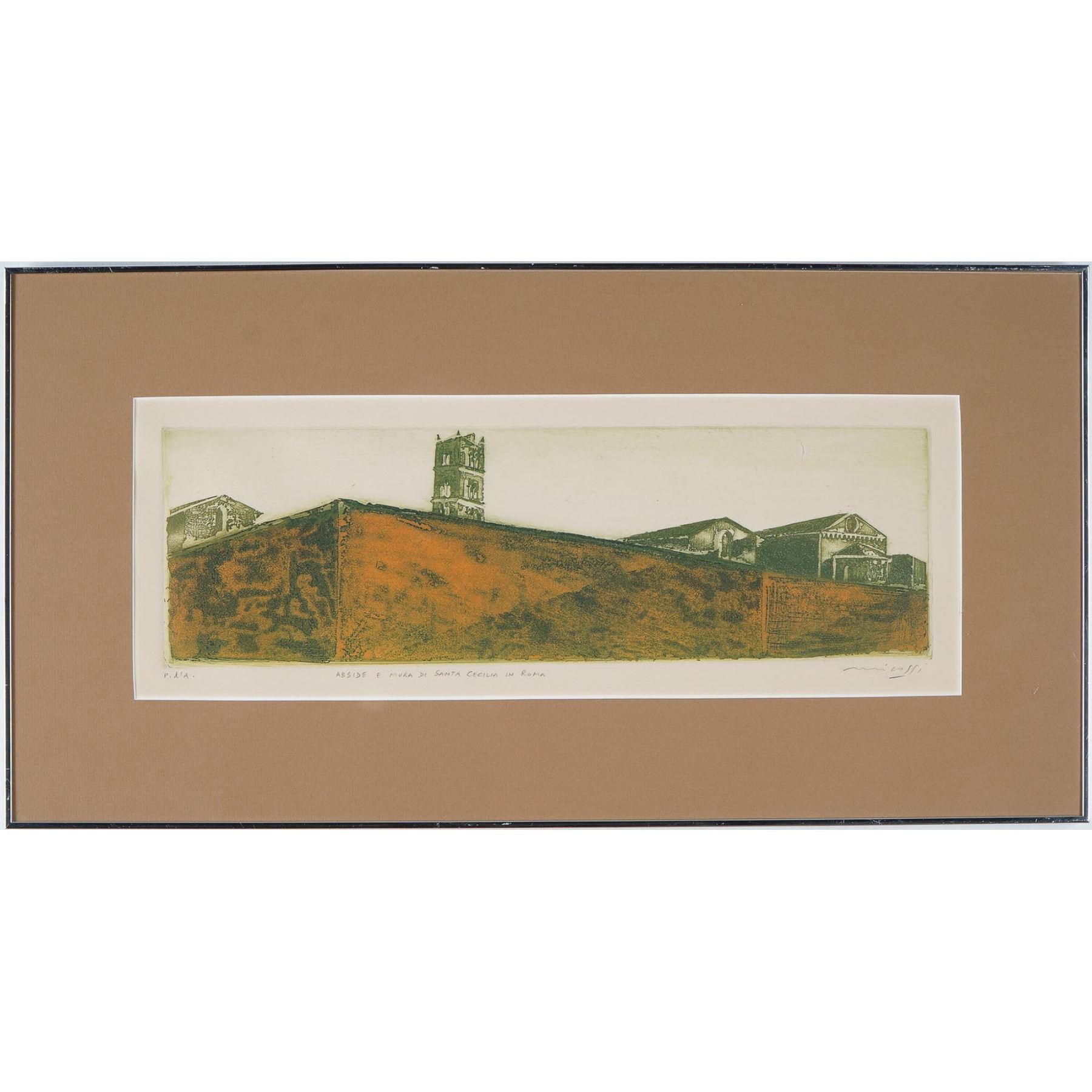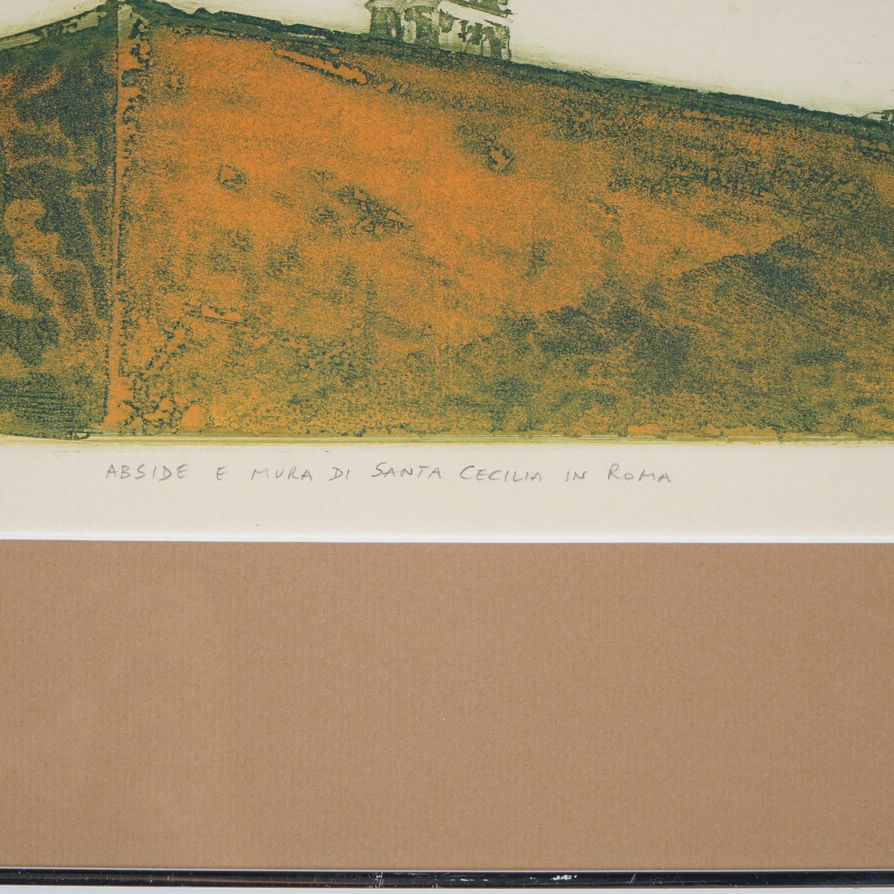 Italian Color Etching on Paper, Wall of Santa Cecilia in Rome, Signed