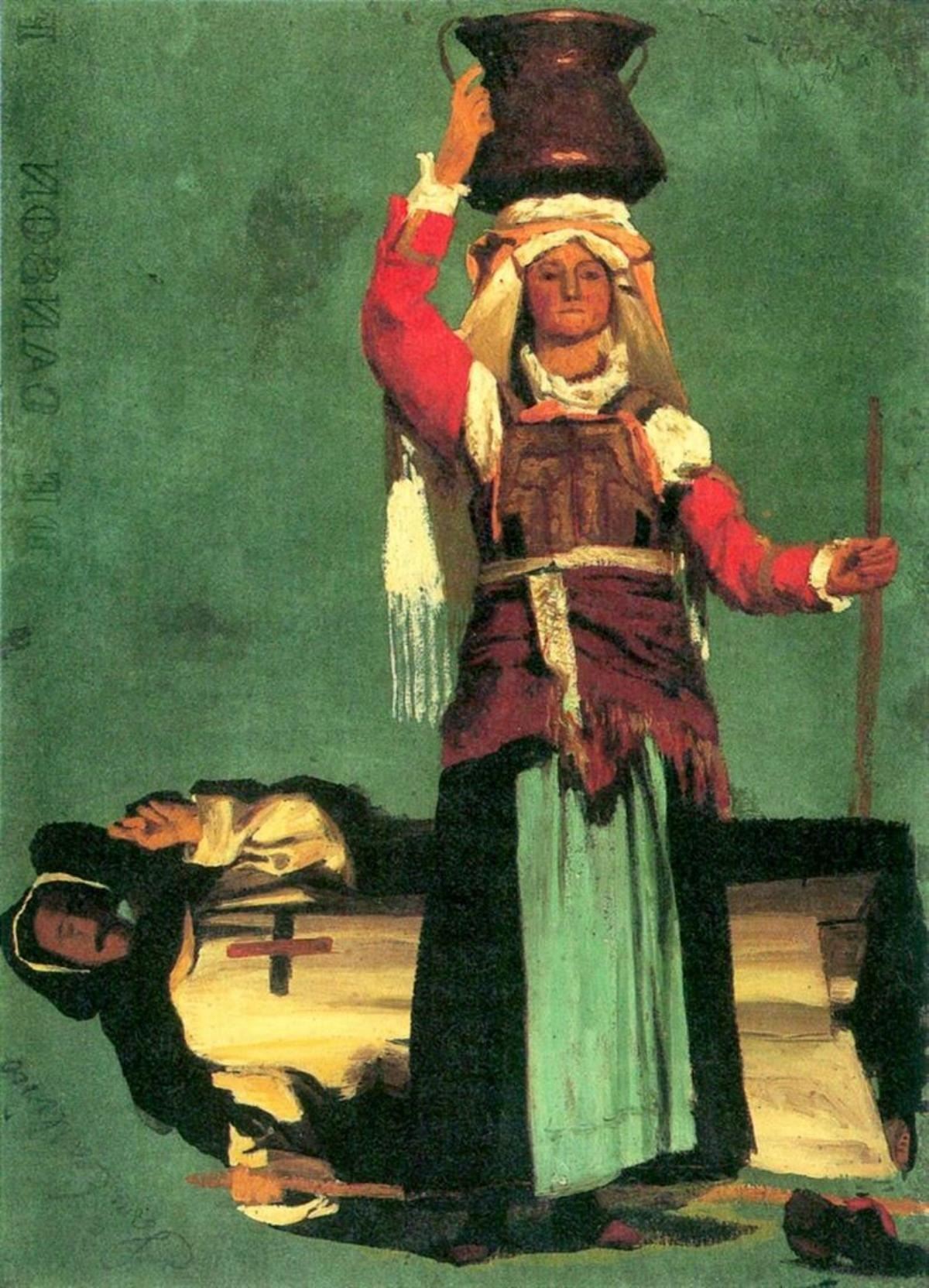 Artist: Albert Bierstadt - Title: Italian Costume Studies - Medium: Fine Art Giclee on Canvas - Image Size: Approximately 20 inches x 14.5 inches - Framed: Unframed on Unstretched Canvas - Biography: Bierstadt became internationally renowned for his beautiful and enormous paintings of the newly accessible American west, and his works found their way into public and private collections at staggeringly high prices for his time. His popularity and wealth rose to tremendous heights only to fade as the interest in the Boston School and impressionism turned public taste away from his highly detailed landscapes suffused with golden light. -