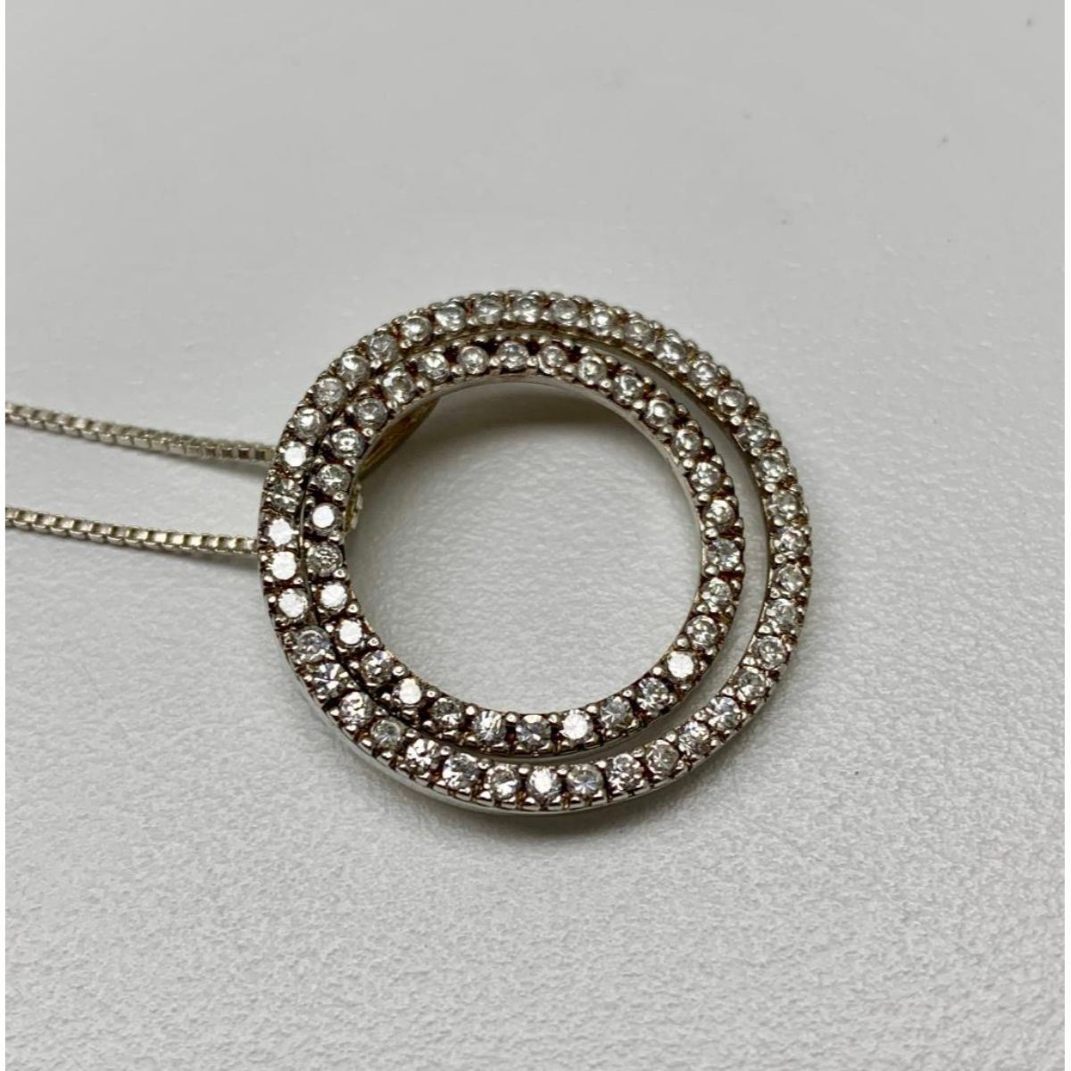 An Italian Cuban Link Sterling Silver 925 Necklace With Double Circle Mounted Pendant. A Tiffany & Co. Inspired Design That Adds Elegance Around The Neck and Attention To The Occasion. Beautifully Designed Piece Complimented By A Simple Cuban Link Sterling Silver 925 Marked Necklace. View Photos For Further Details.