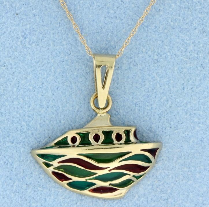 Italian Enamel 14K gold pendant with chain. There is multi color enamel on the pendant in red, green and yellow…looks like a stain glass window when held up to the light. The chain is 14k yellow gold as well and measures 18". 3.1g