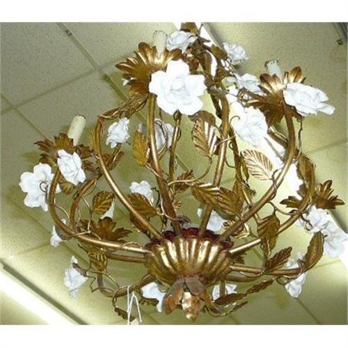 <tr><td>Title:Italian Gilt Tole Chandelier With Flowers</td></tr>