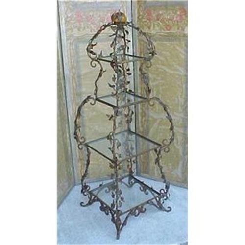 <tr><td>Title:Italian Gilt leafy glass & metal display shelf</td></tr>