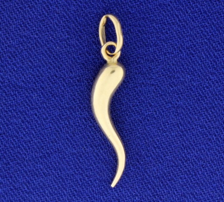 In 10K yellow gold, it is 1 1/8 inch long with bale. .8g