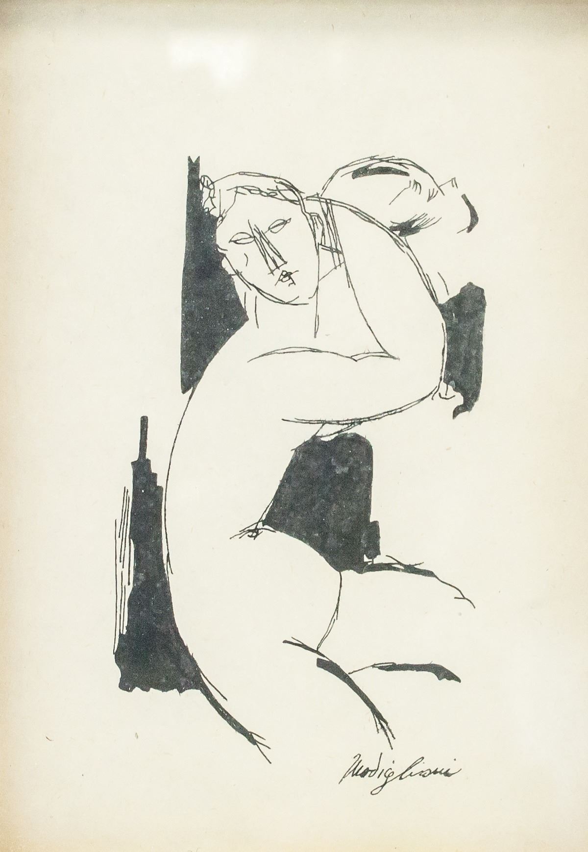 Ink on paper, framed. Featuring nude portrait. Signed "modigliani" to the bottom right of the image. 24 x 18 cm (9.5x 7 in), Frame: 42 x 35 cm (16.5 x 13.5 in).