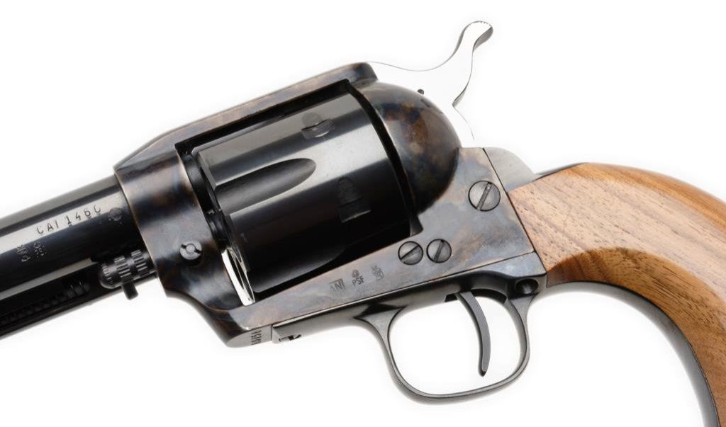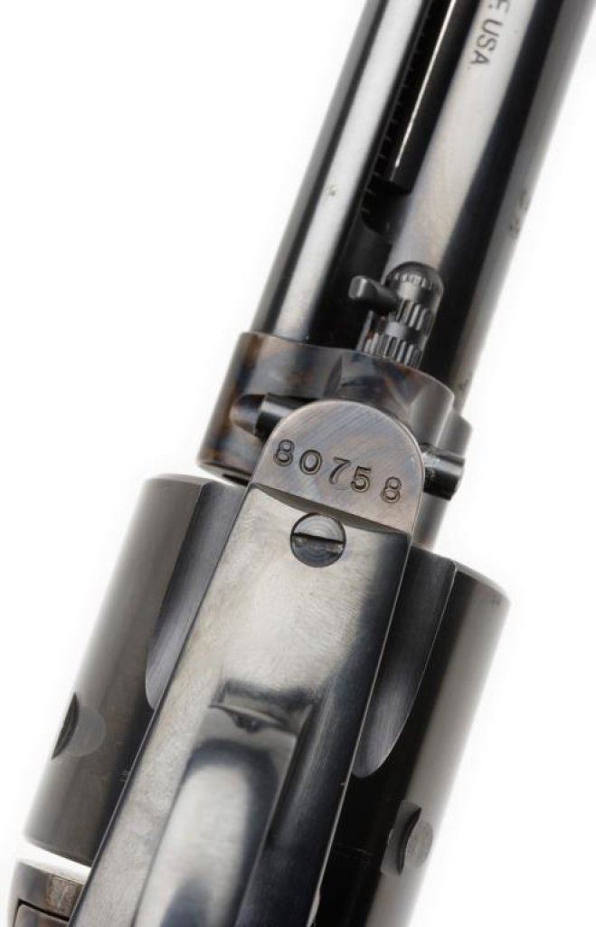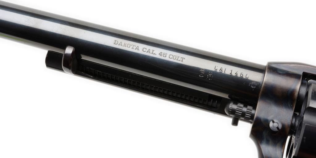** Italian Jager Dakota Model 1873 copy of a SAA revolver, .45 Colt caliber, 7.5” barrel, S/N 80758 (consecutive to previous lot), blued and case hardened finish, smooth wood grips in overall fine condition. Est.: $250-$500.