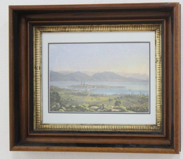 Gouache. Framed. Italian. 19th century. Approx. 6" H x 8 1/4" W image, 12" H x 14" W framed.