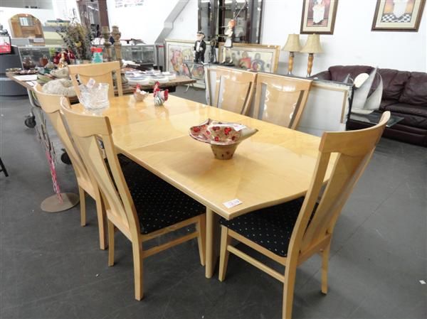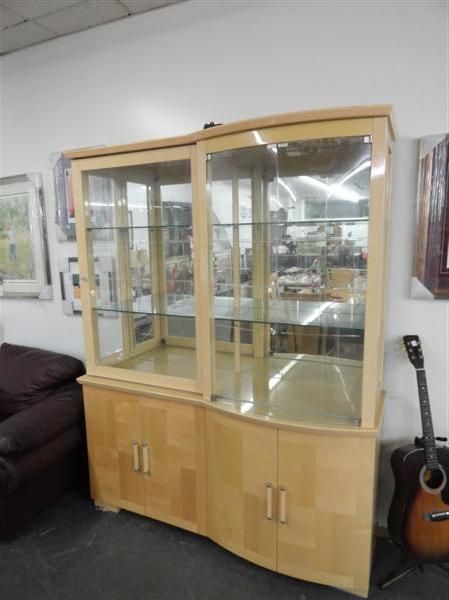 Italian Laquer Wood Table & 6 Chairs w/Glass Front Hutch
