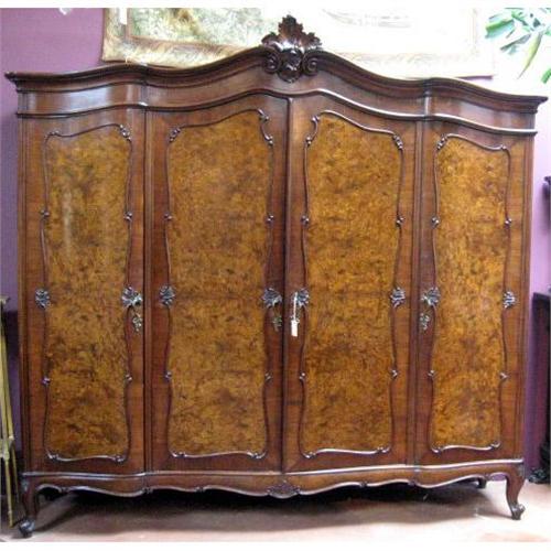 Italian $ doors large Armoire. Beautiful walnut burled veneer and solid walnut. Nice bronze handles.