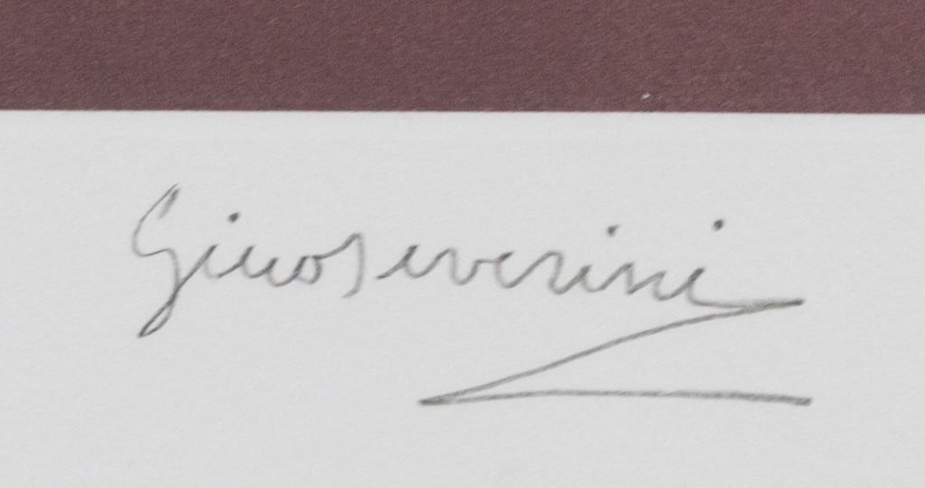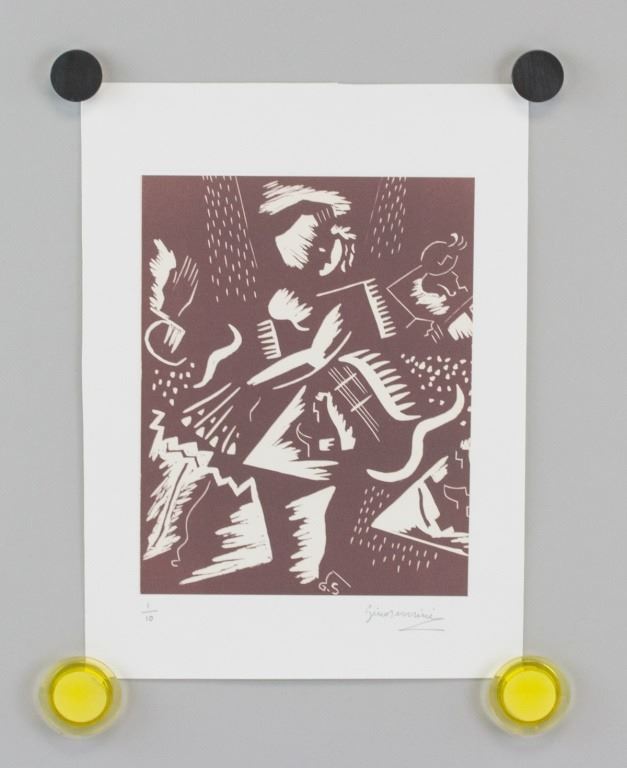 Linocut on paper. Featuring abstract composition. SIgned "Gino Severini" in the bottom right corner. "1/10" inscribed to the bottom left. Image size: 28 x 21 cm (11.5 x 8 inches). Sheet size: 20.5 x 15.5 cm (8 x 6 inches). Provenance: This lot carries limited provenance from a Southern Ontario estate