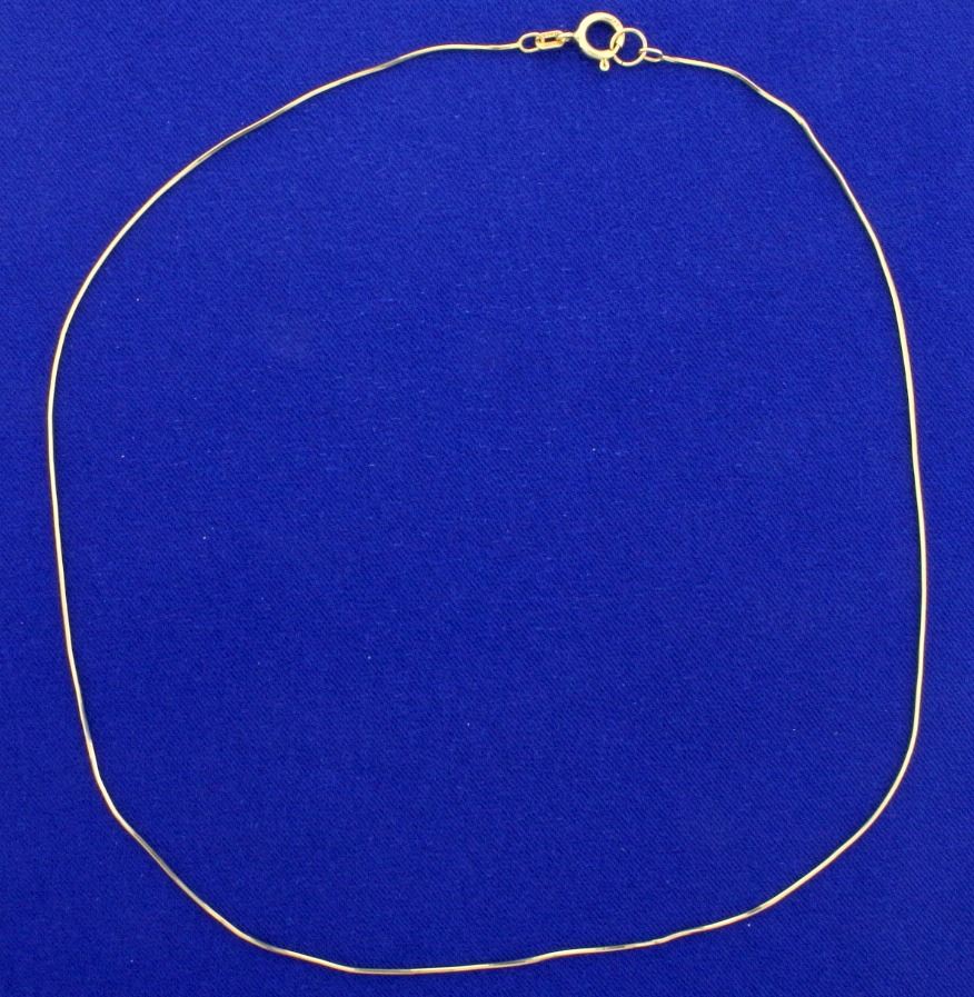 In 14k yellow gold. 0.7mm thick. Perfect necklace to hang a pendant. 2.1g.
