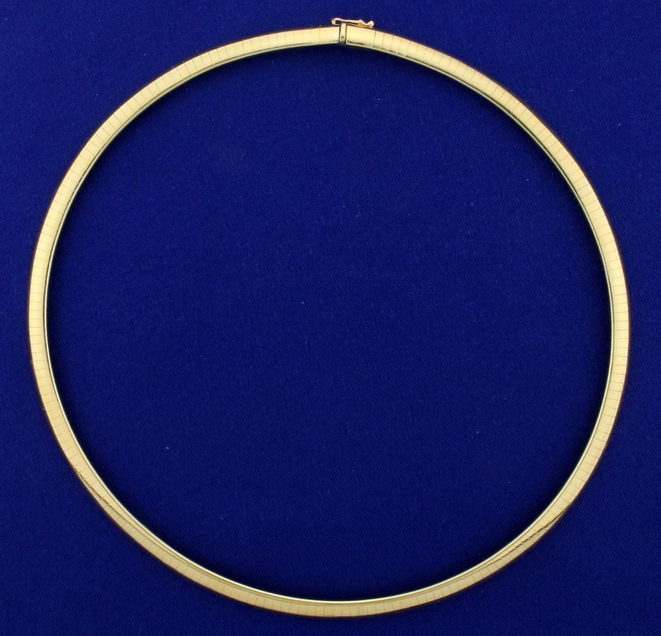 In 14k yellow gold, 16 inch long and 6mm wide with safety clasp. 37.1g.